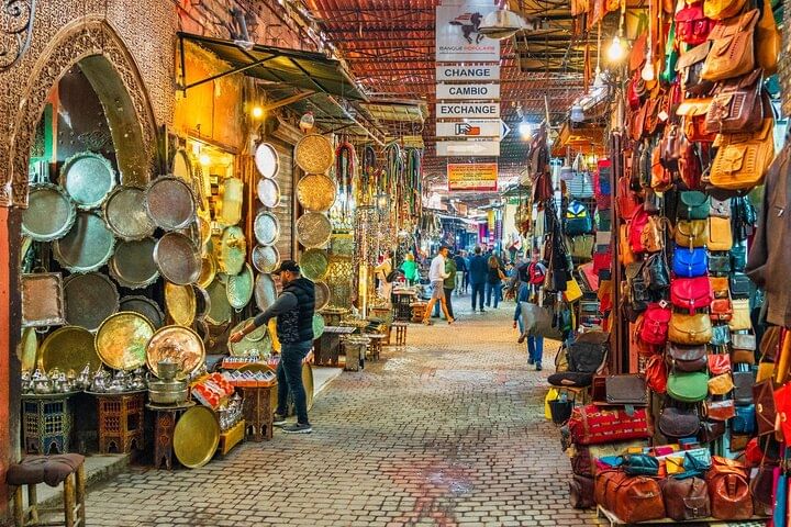 -The bustling Marrakech Souk, where narrow alleys teem with vibrant stalls selling spices, textiles, and handicrafts. With a knowledgeable guide by your side,gaining insights into Moroccan culture and craftsmanship along the way.